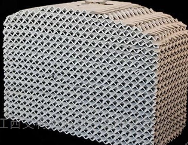 陶瓷波纹规整填料由许多波纹板组成,平行放置在圆柱塔内被称为波纹塔填料。具有低压降、操作弹性大、*小放大效果和**液体处理效果等特点。产品由瓷土为原料加工而成,可耐高温耐腐蚀,化学稳定性好而且强度较高,是支撑各种类型的催化剂的理想载体。