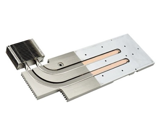 通过热管将散热鳍片和导热底座焊接后与风扇组装在一起。