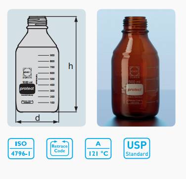 配备易于阅读的刻度尺。采用高温烧制而成、极其耐用的白色陶瓷材质。PU塑料涂层的使用温度极限为:-30°C至+135°C。该涂层可有效防护划痕渗漏和碎片损伤,非常适合用于运输和储存危险介质或贵重样品。紫外线防护能力可达约 500 nm波长。瓶内DURAN特性保持不变,因为着色仅存在于瓶体外表面。得益于创新技术的应用,呈现出非常均匀、耐用且耐化学腐蚀的琥珀色。 适合微波加热。