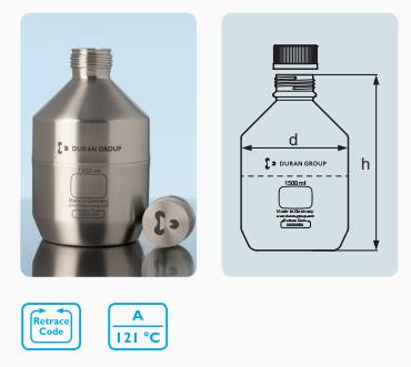 这款坚不可摧的钢瓶非常适合用于那些不适合使用玻璃的存储应用场合,因为存在破损或化学相容性问题的风险。瓶身采用耐腐蚀的 AISI316L(1.4404)不锈钢材质制成,并经过卫生处理,所有焊接缝均为密封结构。瓶内表面光滑,符合Ic(DIN 17441)标准,内缘呈圆角设计,便于清洁。瓶体外表面经过抛光和打磨处理,经久耐用。瓶身带有 GL45 螺纹,并内置有注液口。 本品未附带盖子,但可提供不锈钢盖子。它完全兼容所有 GL45 类型的盖子。