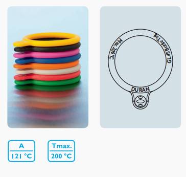 硅胶 GL45 瓶标可安全地贴附在 YOUTILITY 瓶的颈部周围,便于进行个性化定制并确保瓶子的清晰识别。这种弹性瓶标可适用于任何 DIN GL45 瓶的颈部。