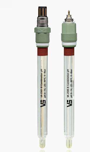 VA-2500-B系列电极,采用耐酸碱球泡设计,在强酸碱介质工况条件下实现长期寿命的同时,对于强碱溶液之pH值测量更加精确。采用耐高温凝胶参比电解质,电解质渗出较慢,使用寿命长。陶瓷孔内芯设计,为参比系统使用寿命更添一份保障。