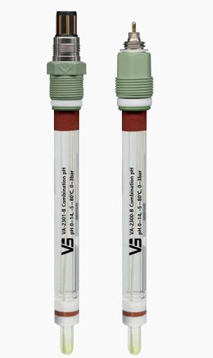 VA-2300-B系列电极,采用耐酸碱球泡设计,在强酸碱介质工况条件下实现长期寿命的同时,对于强碱溶液之pH 值测量更加精确。参比电解质采用耐高温凝胶参比电解质,电解质渗出较慢,使用寿命长。