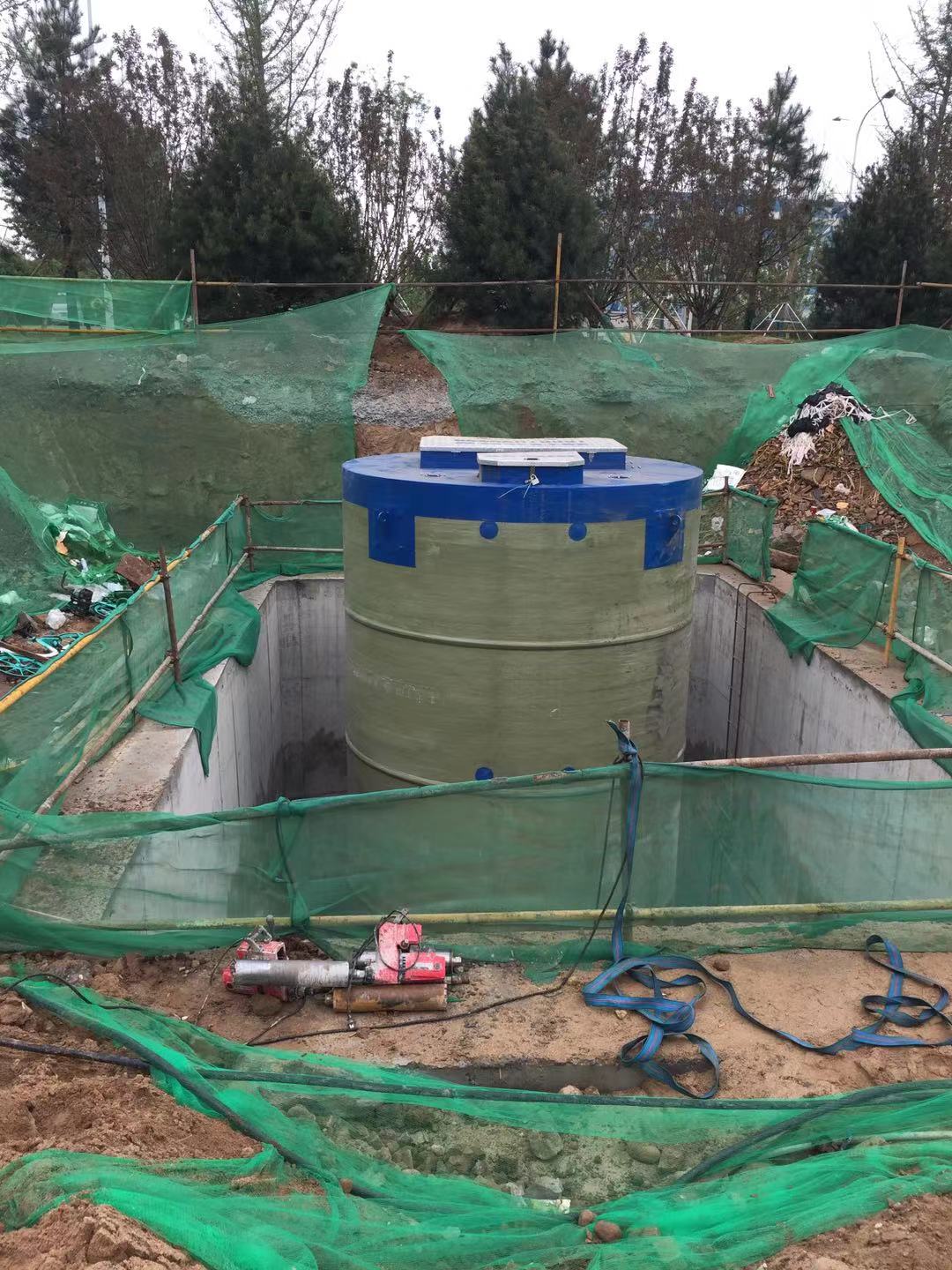 一体化预制泵站工程,泵站主体由井筒、潜水泵、格栅系统、提升链、管道、阀门、液位传感器、控制系统和通风系统等部件组成。