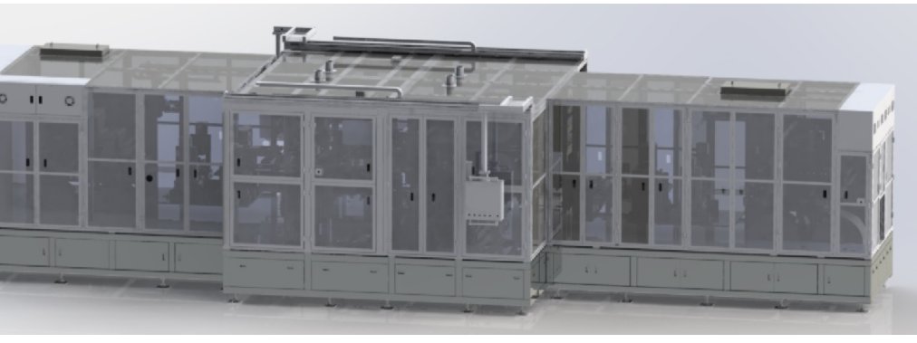本设备主要用于动力电池制片和叠片。 将冲切极耳后的正、负极卷料切成叠片用的片料,再对正、负极片料和隔膜进行Z字型叠片,隔膜尾卷后贴U型侧胶,自动下料。