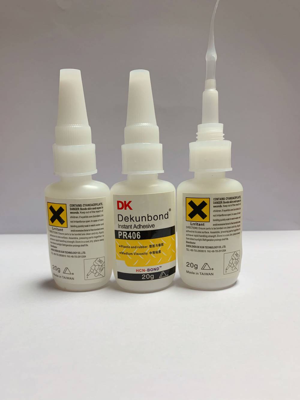 德坤dk-406是一款能直接使用的单组分快干胶。点胶便利。非常适合连续化生产线作业。而且粘接非常牢固、固化后可以达到材料撕毁都不开胶的强度。透明不发白,耐冲击,耐振动,耐剥离 抗冲击 柔韧性好;防水性能好 耐高低温、耐老化等优异性能。
