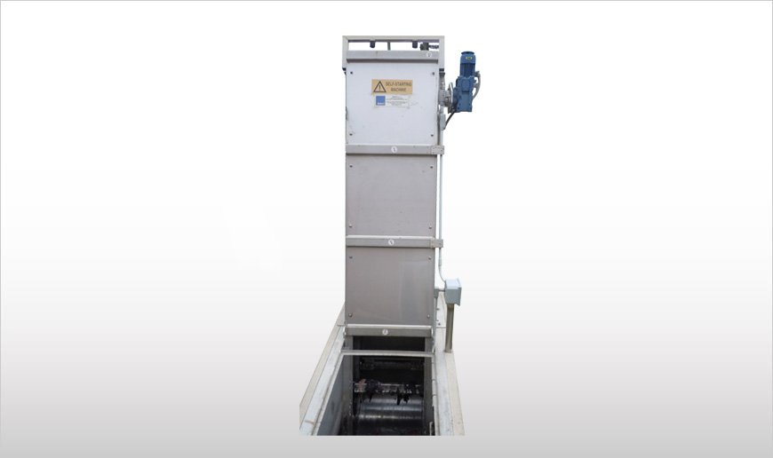 链传动的刷子和刮渣器清洁多孔板过滤器同时输送栅渣至卸渣点。