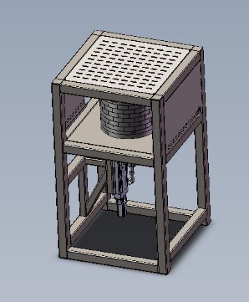(3)坩埚放置台采用钣金切割焊接成型,便于坩埚放置稳定不晃动,坩埚放置台通过锁紧装置固定在步进电机作为驱动丝杆转动从而沿导向轴方向上下可移动的支撑平台上;