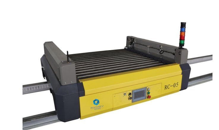 有轨穿梭车( RGV),是一种在轨道上运行,用于货物水平搬运的物流设备,具有安全性高、简单可靠、调度灵活等优点,与智能车间的其他物流产品配合使用,有效提高车间转运的运行效率。RGV在接收到作业指令后,通过条码定位于指定输入工位,接收物料后进行穿梭运行,将货物输送到指定输出工位。穿梭车主要由行走机构、输送设备、导轨、检测装置、控制系统等组成。