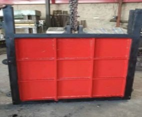 门体一般采用面板与加强肋的结构,面板可做平面或拱形。门体一般整体铸造和机加工,但尺寸较大的可采用分块组成式。门体上一般采用整体式金属止水,兼作支承滑块,金属止水用同材料制作的沉头螺钉紧固在门体上,螺钉头部与止水工作面一起精加工,一些尺寸较大的也可"P"形橡皮止水。