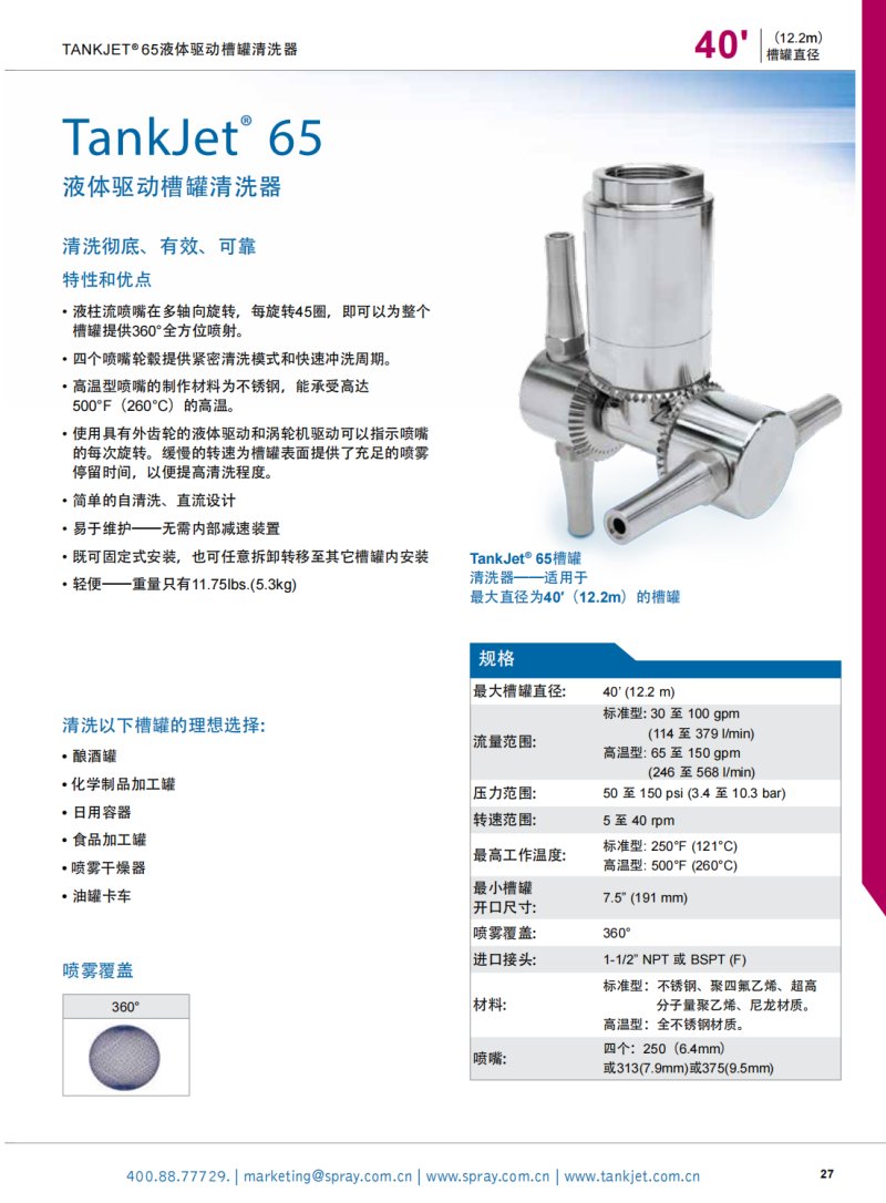 选用**方案彻底清洗您的槽罐的同时,又能 尽量减少昂贵化学品、水以及人力的使用量, 这无疑是一个极富挑战性的课题。您可以从多 个方面着手,实现槽罐清洗设备性能的**化。 本单元中,我们精心为您挑选了若干帮助您 实现清洗效率**化的方法和指南。