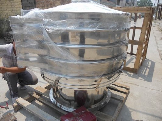 本机由料斗、振荡室、联轴器、电机组成。振荡室内有偏心轮、橡胶软件、主轴、轴承等组成。可调节的偏心重锤经马达驱动传达到主轴中心线,在不平衡的状态下产生离心力,使物料强度改变,在筛内形成轨道旋涡。重锤调节器的振幅大小可根据不同物料和筛网进行调节。整机结构紧密、体积小、不扬尘、噪音低、质量高、能耗低、移动维修方便。