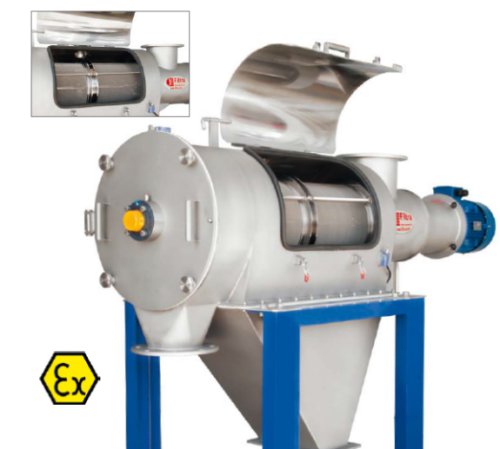 该产品主要用于工业部门,如 食品、制药、化工等领域,用来分离各种不同的产品,如面粉、糖、陶瓷制品、清漆、染料、塑料等。它可以用来分离粒度是75微米到5毫米的产品。需要分离的产品通过送料螺栓进入滚筒内部,再由离心桨将其分布在滤网面上。离心桨转动产生离心力,在离心力的驱逐作用下,产品通过滤网。**粒度的和那些含杂质的产品就被扔掉了。离心桨的速率可根据不同产品进行调试。可以根据要求定制不锈钢AISI304或AISI316材料的设备。如果离心式振动筛分仪用于潜在的爆炸环境中,那么必须要按照相关规定生产,并提供防爆指令证书。