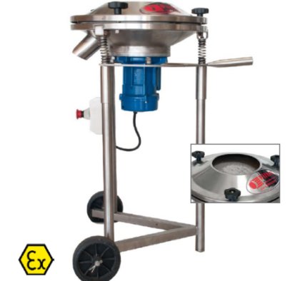 西班牙EQUILAB公司所生产的CENTAURO 系列工业用移动圆形振动筛是一款小巧、质量轻、可以移动的振动筛。现场检查和安全筛选工作(山区、田间、工厂)中频繁使用。易移动,可用于液体和固体的分离。主要用于如下产品的分离:搪瓷釉质、涂料产品、陶瓷粉、沙子。除此以外,还用于化工、食品和农业等领域。产品由不锈钢AISI304制成(也可订制AISI316材质或在易爆炸环境里使用的ATEX 材质,并提供相关的防爆指令证书)。只能放一层筛子,滤网容易更换和固定。两个规格的振动筛可供选择:直径是405mm和直径是600mm。