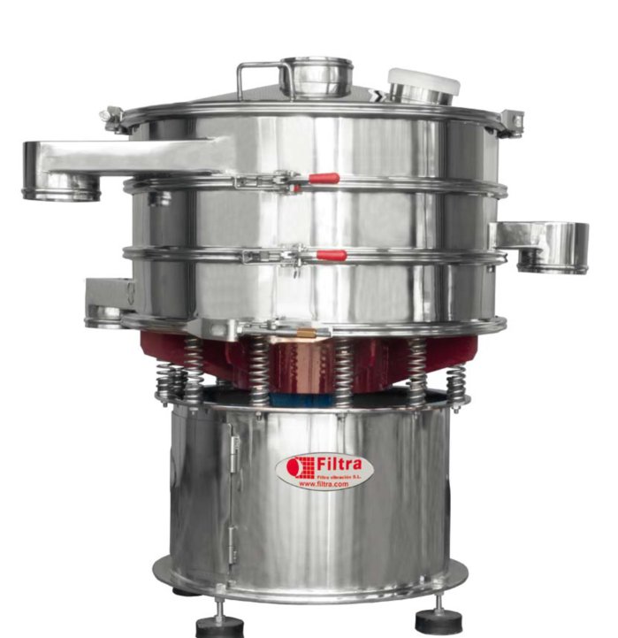 西班牙EQUILAB公司VULCANO 振动筛是筛分质量在5-75kg产品(取决于产品类型)的理想选择。产品采用不锈钢AISI304 (AISI316)制成,在一个不平衡电机的驱动下产生三维立体运动,使产品的筛分更高效。不平衡电机的调整可根据滤网上产品的运行规则和筛分速度。底部有一个侧向出口,用来卸载筛分出来的产品。振动筛有无侧向出口可根据需求定做。如果选择了带侧向出口的振动筛,那么筛分的过程可以自动完成:产品进入振动筛以后,自动穿过网眼。此振动筛*多装5个直径是300mm或400mm的筛子。标准的固定系统由螺纹杆、胶木把手和一个打开(连续送料用)或封闭的有机玻璃盖子。可选快速固定夹具,金属盖和易移动的轮子。如果振动器用于潜在的爆炸环境里,我们在生产时将采用ATEX材料,Filtra公司会提供相关的欧洲防爆指令证书。