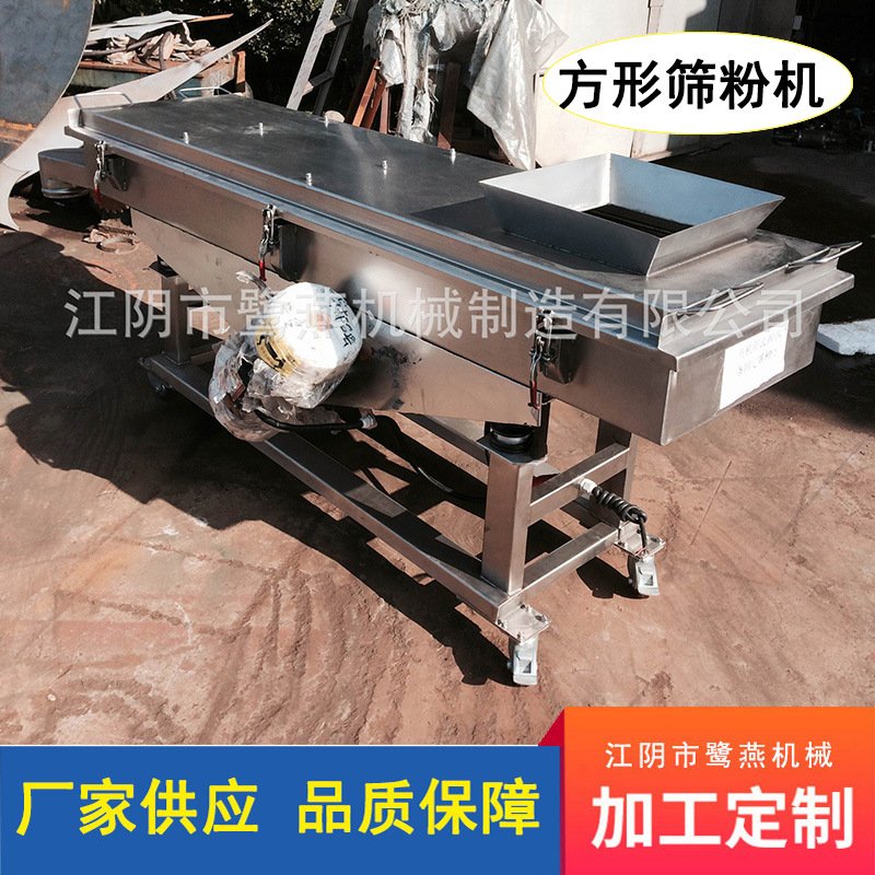 FS系列方形振荡筛,是由进出料口筛网筛箱、振动源及减震器三大部件构成。机座与筛箱连接有4-6组软橡胶减震器上下固定,开机即产生离心力,振幅有偏心块、减震器对应控制,从而达到需要的良好的工作性能,使物料有一个抛震和松动的过筛过程。