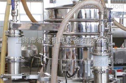振动筛通过弹簧接头连接在料桶和储料罐间。当与物料接收站相连时,它的入口与加料斗相连接,出口与输送系统相连接。接通压力发生器后,物料被气力输送且通过内置筛网。