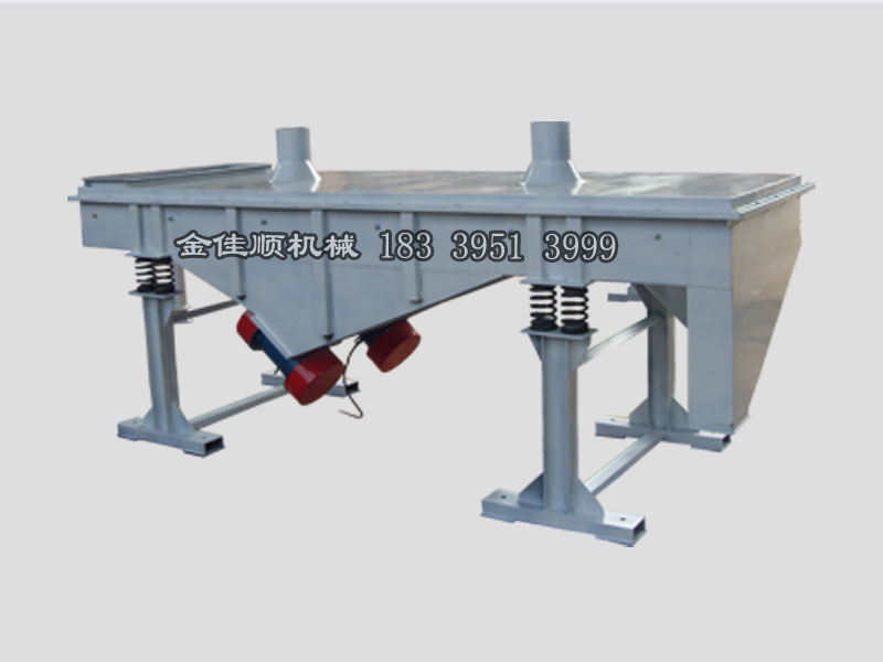 DZSF系列直线振动筛是双振动电机驱动。当两台振动电机做同步、反缶旋转时,其偏心块所产生的激振力在平行于电机轴线的方向相互抵消,在垂直于电机轴的方向叠为一合力,因此筛机的运动轨迹为一直线。两电机轴相对筛面有一倾角,在激振力和物料自重力的合力作用下,物料在筛面上被抛起跳跃式向前作直线运动,从而达到对物料进行筛选和分级的目的。适用于粒度在0.074-5mm、含水量小于70%、无粘性的各种干式粉状物料的筛分。**给料粒度不大于10mm。