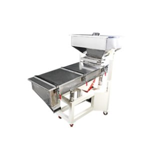 振动筛是通过物料在筛面进行震动或者滑动,从而使得比筛网孔径小的物料透过筛面被筛选出来,而体积较大的物料则被留在晒面上,然后被收集起来。原理简单.利用振动电机上产生的离心力得到激振力使筛体及物料进行往复上下运动,迫使筛体带动筛网做纵向运动,使振动筛上的物料受激振力而周期性向前抛出一个射程,再经过两层筛网的筛选,有效的将物料按照筛网的孔径范围分为3种粗细等级,从而达到理想的筛分效果。