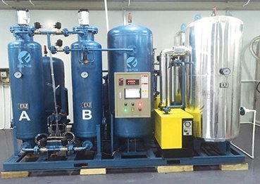 压缩空气经空气净化系统除去油、水、尘埃等杂质后进入装有沸石分子筛的吸附塔