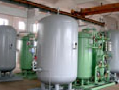 变压吸附制氮采用碳分子筛为吸附剂。一定的压力下,碳分子筛对空气中的氧的吸附远大于氮,因此通过可编程序控制气动阀的启闭,A、B两塔可以交替循环,加压吸附、减压脱附,完成氧氮分离,得到所需纯度的氮气。