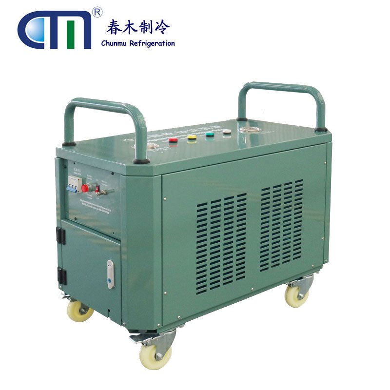 (1)大功率制冷剂回收机专用无油润滑压缩机设计,多种制冷剂通用;