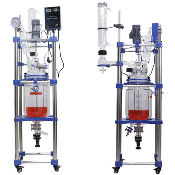 双层玻璃反应釜可以提供做高温反应(配置相应的循环油浴锅,高温度可以达到300℃);双层玻璃反应釜也可以做低温反应(配置相应的低温冷冻液循环系统,低温度可以达到-80℃);双层玻璃反应釜中可以抽成真空,从而做真空反应。而且,它的设计使试验安全,方便。