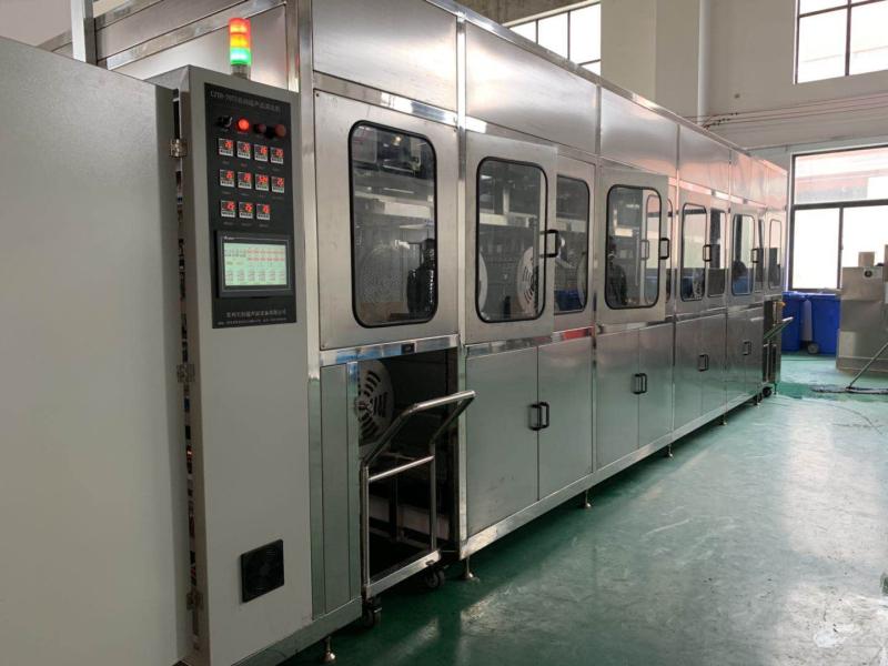 工作流程: 作业者手动上料位→超声粗洗→超声波精洗→超声漂洗 →鼓泡漂洗→ 热水漂洗→热水漂洗→热风烘干→取出工件。