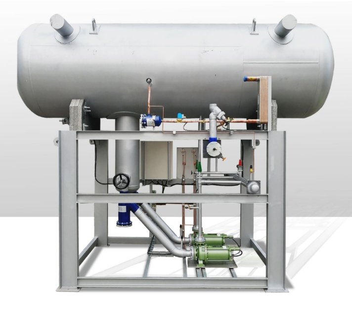 桶泵机组为自动回油方式,将低压循环桶中分离后的润滑油经加热板换加热后进入机组吸气管路,保证机组正常运行的同时大大提升系统效率。