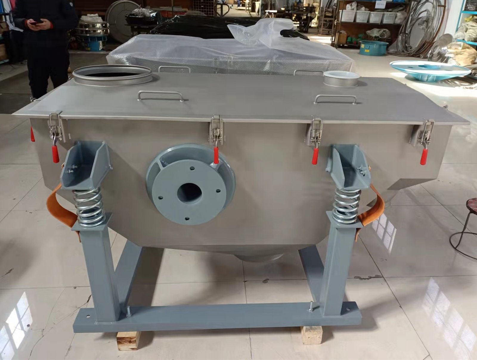 该直线筛内外喷砂,上盖加快开,方便拆装,弹簧处加装皮带,安全更有保障。