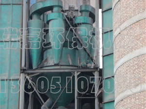 4、经上笼形转子离心加速后的颗粒随循环风进入外部各个旋风筒内,由于新设计的旋风筒在进风口蜗牛角处加设了导风板,在旋风筒套筒下端增设了调速板,使旋风筒的流体阻力下降,循环风在导风板作用下,以较高的风速进入旋风筒中,由于蜗牛角部分扩大,故风速突然减低,加速颗粒沉降、提高旋风筒的收尘效率 。