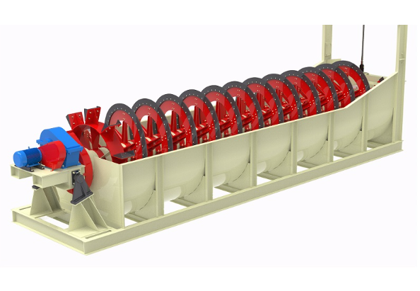 螺旋分级机是选矿的设备之一,借助固体颗粒的比重不同,因而在液体中沉淀的速度不同的原理,进行机械分级的一种设备。螺旋分级机应用于处理冲积砂矿,尤其适合于有用矿物单体解离度高而且呈扁平状者。螺旋分级机简称分级机。分级机主要有高堰式单螺旋和双螺旋、沉没式单螺旋和双螺旋四种分级机。