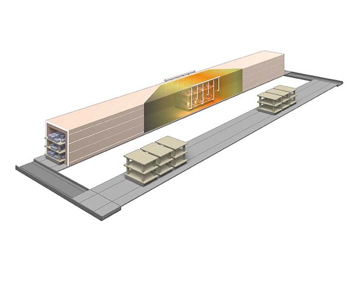 隧道窑是将制品装载到台车上后在炉内进行搬送烧成,且需在现场施工建成的烧结炉。实现省力化、节能化,可减少燃料的使用,并降低CO2的排放量。**温度可达1,830℃。