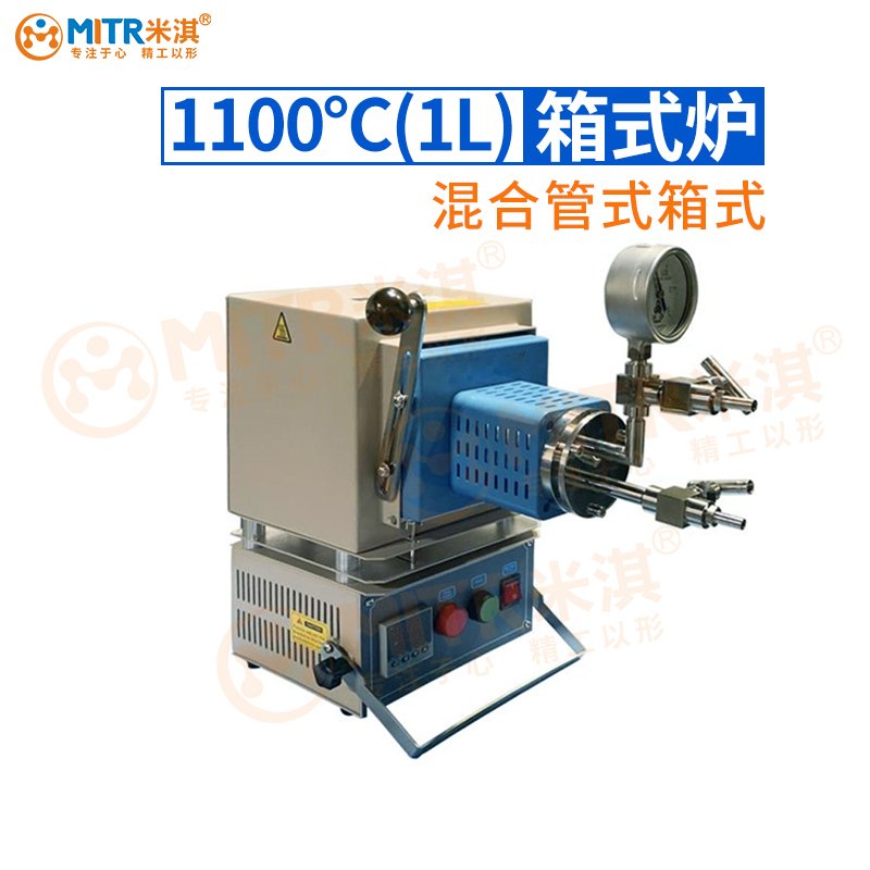 MITR-1100X-1L-H是一款小型混合管式/箱式炉,其炉膛尺寸为100×100×100mm,做为单纯的箱式炉可对样品在空气环境下进行热处理。此款设 备配有石英炉管和不锈钢密封法兰,可对样品在真空或气氛保护环境下进行热处理。设备**温度可达1100℃,而且功率仅仅为500-700W。另外设备体积较小,可放入到手套箱里操作。