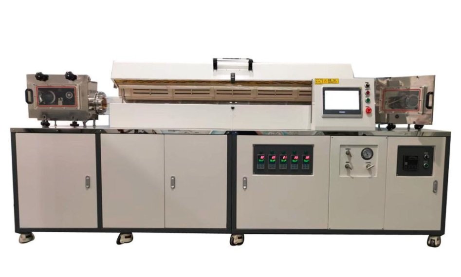 该设备为我司研发用于薄膜材料连续生长专用设备或薄膜材料连续热处理使用,该设备配备真空系统,气体流量控制系统,可实现多种实验调整,同时具有一定的产能要求。真空腔室内采用动密封,确保系统在真空或气氛保护条件下工作,适用于连续生长等工艺要求。