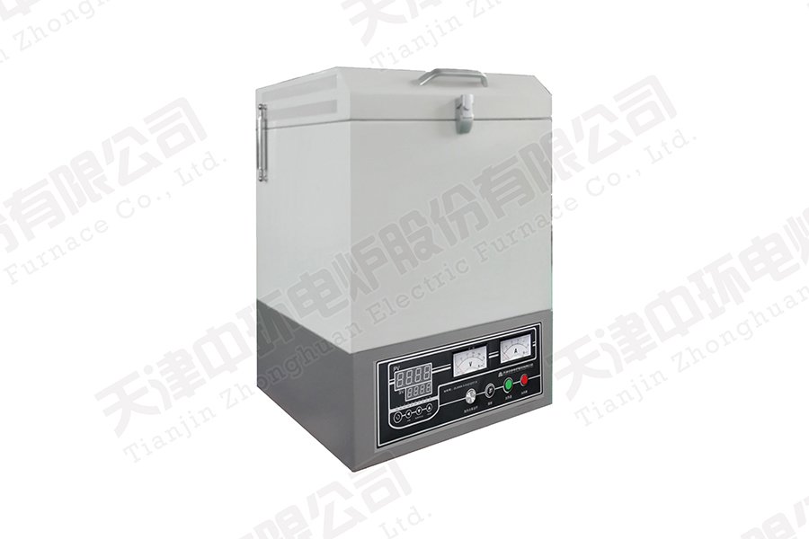 电炉为炉控一体式,电炉上部由内外炉壳及炉门组成,内炉壳装有纤维炉膛,内外炉壳之间有空气隔热层,炉壳前后二侧均可拆卸,用于安装检修炉膛时用。电炉后部还装有热电偶用来测量炉膛内的温度。电炉下部是控制箱,控制箱前面板装有温控调节仪、电流表及加热通、断按钮等,控制箱内装有温度控制、电气控制等元器件。
