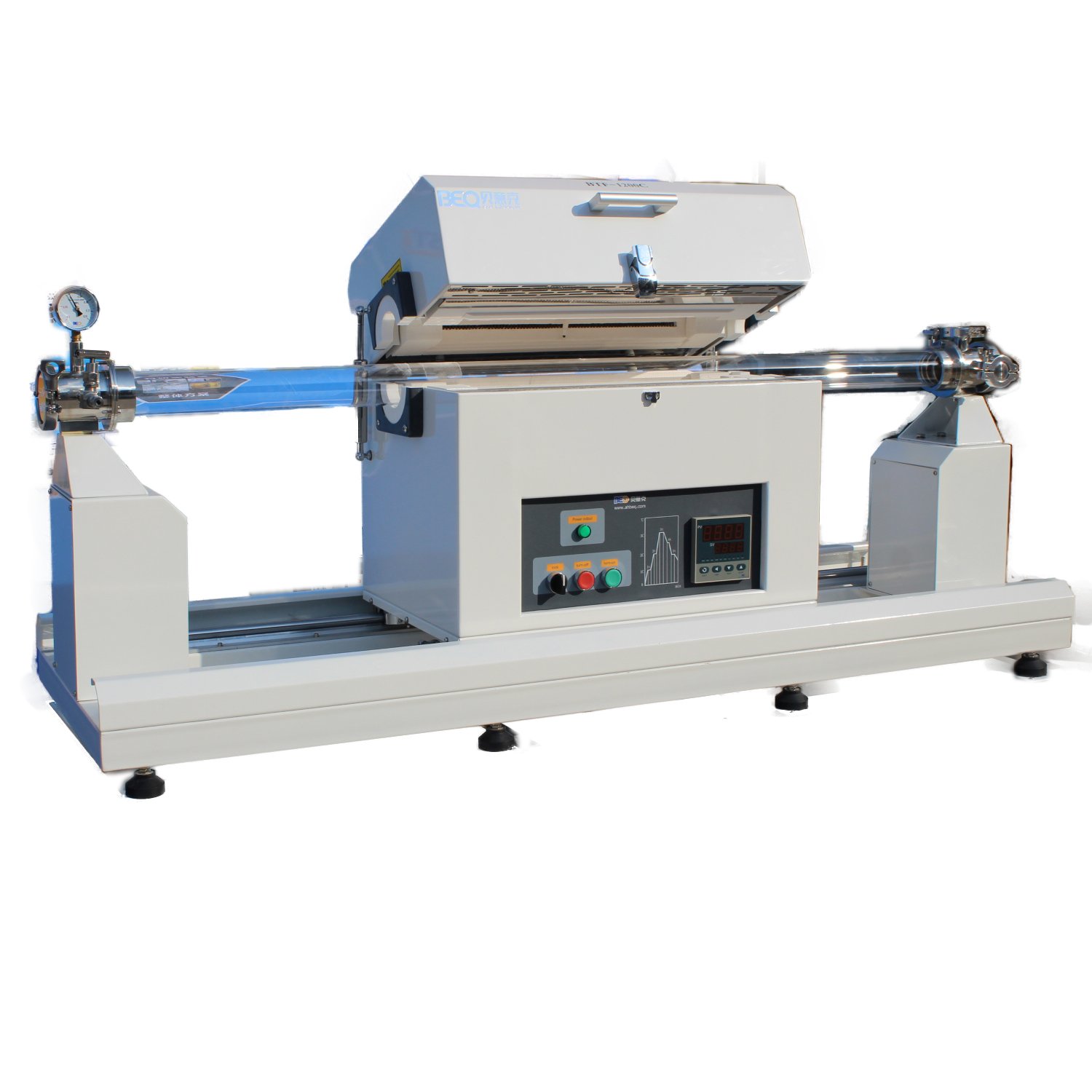 操作时可将实验需要的恒定高温直接推到样品处,使样品能得到一个快速的升温速度,同样也可将高温的管式炉直接推离样品处,使样品直接暴露在室温环境下,得到快速的降温速率。