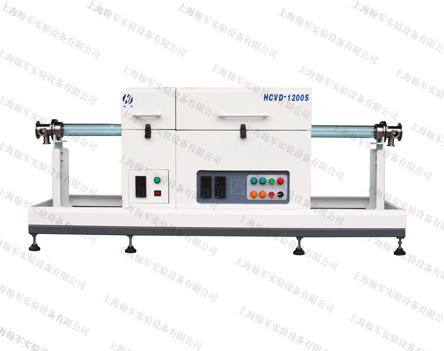 此套系统H-CVD-1200S前端配有可加热到0-1000℃的蒸发器,辅助固体源蒸发,后端为双温区硫化炉,温度控制精确,操作简便。