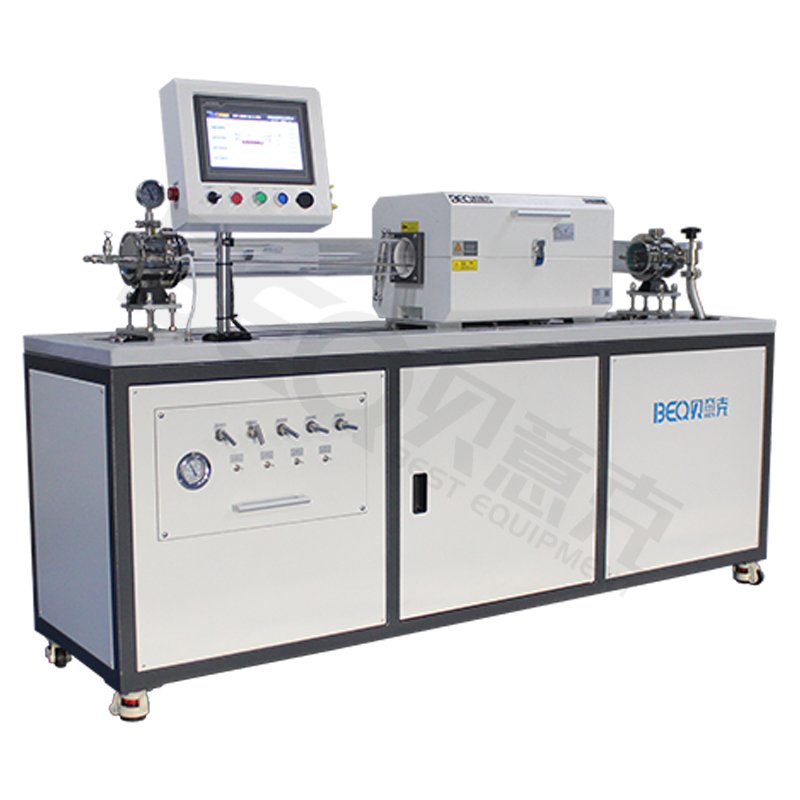 BTF-1200C-SL-L-CVD是一款智能型滑轨式CVD系统。该设备主要分为五大部分:加热系统,真空系统,气体控制供给系统,自动控制移动系统,控制软件系统组成。炉膛为440mm温区炉膛,配K型热电偶,单点控温;加热炉置于滑轨上,可手动在规定的范围内任意滑动到想要的位置并用限位器固定住;气路系统采用4路流量计控制,经由不锈钢混气罐混合,再进入左端进气法兰;左端法兰端盖上预留1路进气口,内部有不锈钢导气管,可将气体导入加热区位置。该设备适用于高校研究所以及研发型企业使用。