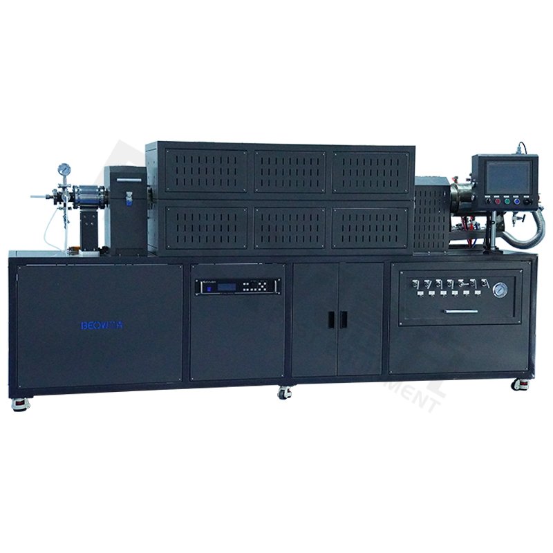 反应管组件使用耐高温刚玉管,石英管两端安装可旋转磁流体,采用步进电机驱动进行旋转。