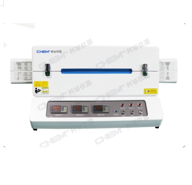 实验级三温区管式炉采用了控制单元和炉膛一体化设计。整体双层风冷结构设计,使表面温度保持在60℃以下。炉膛本身采用了高纯氧化铝微晶纤维高温真空吸附成型,加热元件为电阻丝。散热系统采用双层风冷结构,炉体表面温度≤60℃。真空腔室采用石英管材质,其贯穿整个炉体,炉管两端选用不锈钢法兰密封,可在真空或气氛环境下工作。加热元件与炉管平行,均匀的分布在炉管外,有效地保证了温场的均匀性。采用宇电AI-3756P触摸屏控温仪/AI-516P智能控制仪和K型热电偶,可编程30段程序控温,控温精度±3℃。