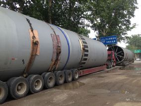 2、窑体与水平呈一定的斜度,整个窑体由托轮装置支承,并有控制窑体上下窜动的挡轮装置。