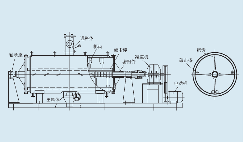3、铸造不锈钢耙齿。大多厂家设计为空心管焊制耙齿,在干燥过程中容易弯曲、断裂,尤其在干燥机内部加入敲击棒后,空心管焊制耙齿故障率较高,经常出现耙齿弯曲、断裂现象。铸造不锈钢耙齿的高强度及稳定性,使内部加入敲击棒后工况极其稳定,其在实践中已得到充分证实。