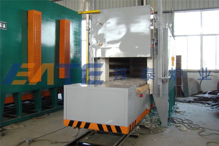 可倾式台车炉主要供一般大、中型金属或合金机件在低于额定温度下淬火之用。其主要特点在高温下,可以将工件迅速翻入淬火油槽,该系列产品也可做正火、退火之用,多年来经广大用户广泛使用,反应良好。