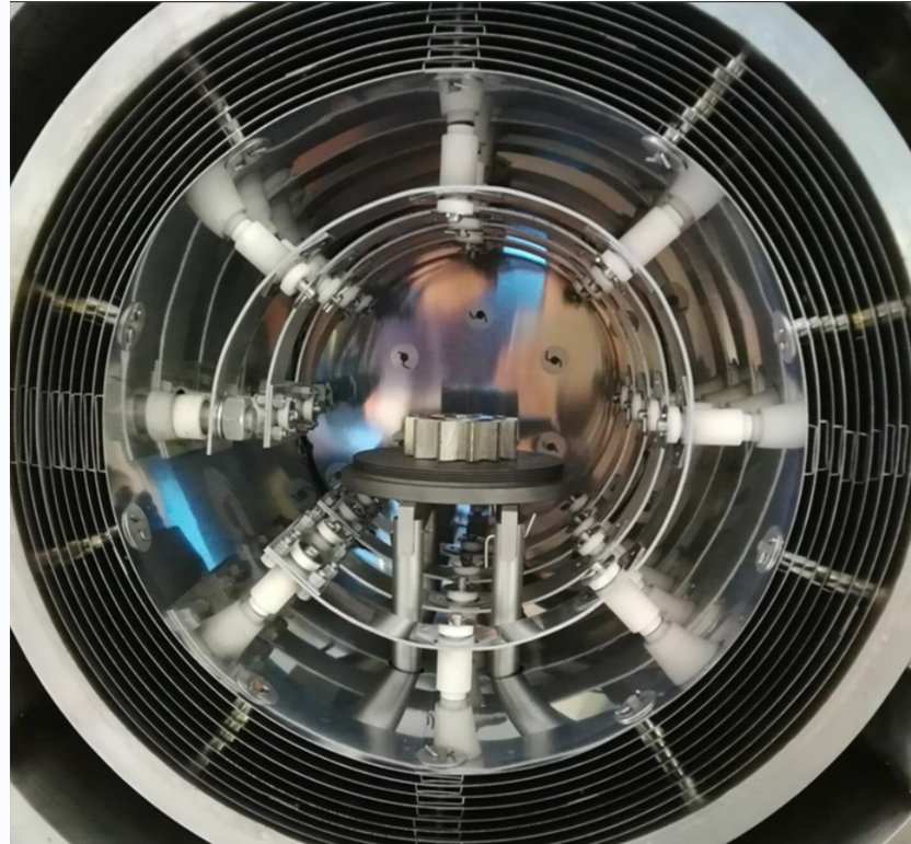 采用圆筒形加热室结构。隔热屏采用多层钼结构,各层之间采用优质99刚玉陶瓷,发热体为钼片,钼片均匀环绕在隔热屏周围,实现良好的温度均匀性。具有使用寿命长、隔热保温性能好、真空放气量极少。外框使用不锈钢(310S)板材料,并且焊接多道加强筋以保证不变形。