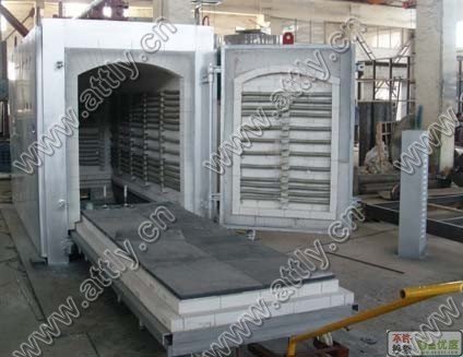 加热元件:合金丝制作成螺旋状或波纹状,缠绕在陶瓷管或瓷钉组上,有效保证其热辐射性和寿命。台车工作面上铺设碳化硅炉板,保护底部加热元件。台车采用一体化路轨或无轨式(根据用户要求)。炉膛两侧配置冷却风机,顶部开排气通道,有效地提高冷却速度。
