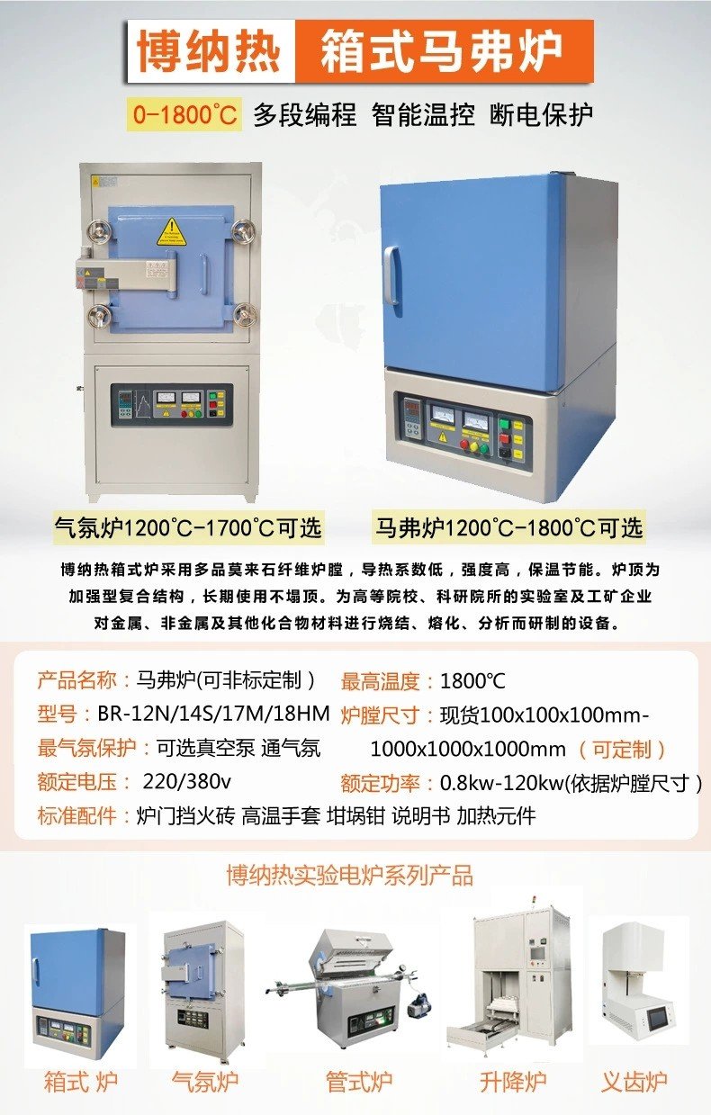 济南博纳热高温马弗炉,箱式气氛炉源头工厂现货,1200℃/1400℃/1700℃/1800℃高温电炉可定制