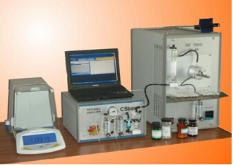 1)被分析产品的原始样品(10~ 200mg)被高温燃烧,在管状燃烧室内,温度在1300~ 1500℃之间,样品被或未被包裹,通入氧气或自然空气。燃烧后的气体产物通过吸附剂吸走灰尘和水分。气流被实时调节,在一定压力下气体被送入IR红外测量池,里面带有干涉过滤器,可精确测量SO2的含量;