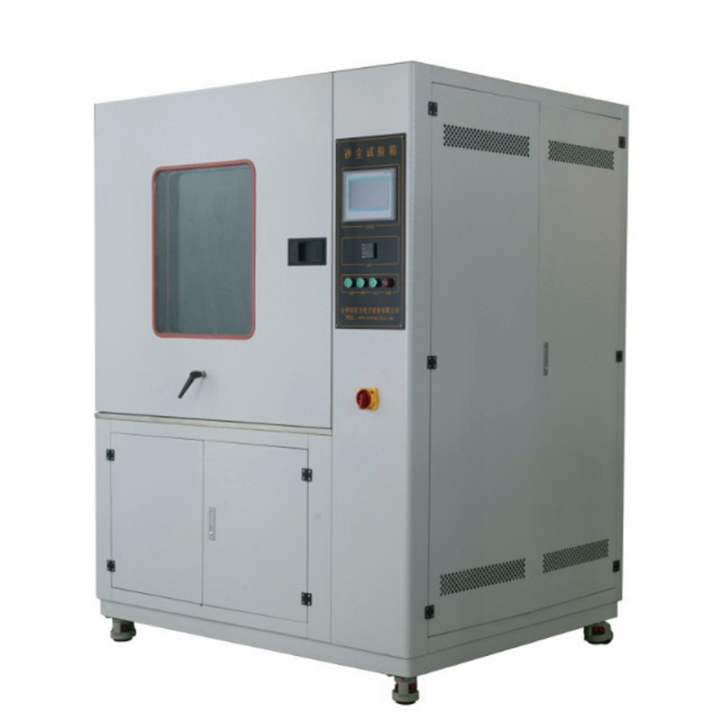 由风机推动一定浓度的沙尘以一定的流速吹过试验样品表面,测试这些试验样暴露于干砂或充满尘土的大气作用下防御尘埃微粒渗透效应的能力、防御砂砾的磨蚀或阻塞效应的能力及能否储存和运行的能力。