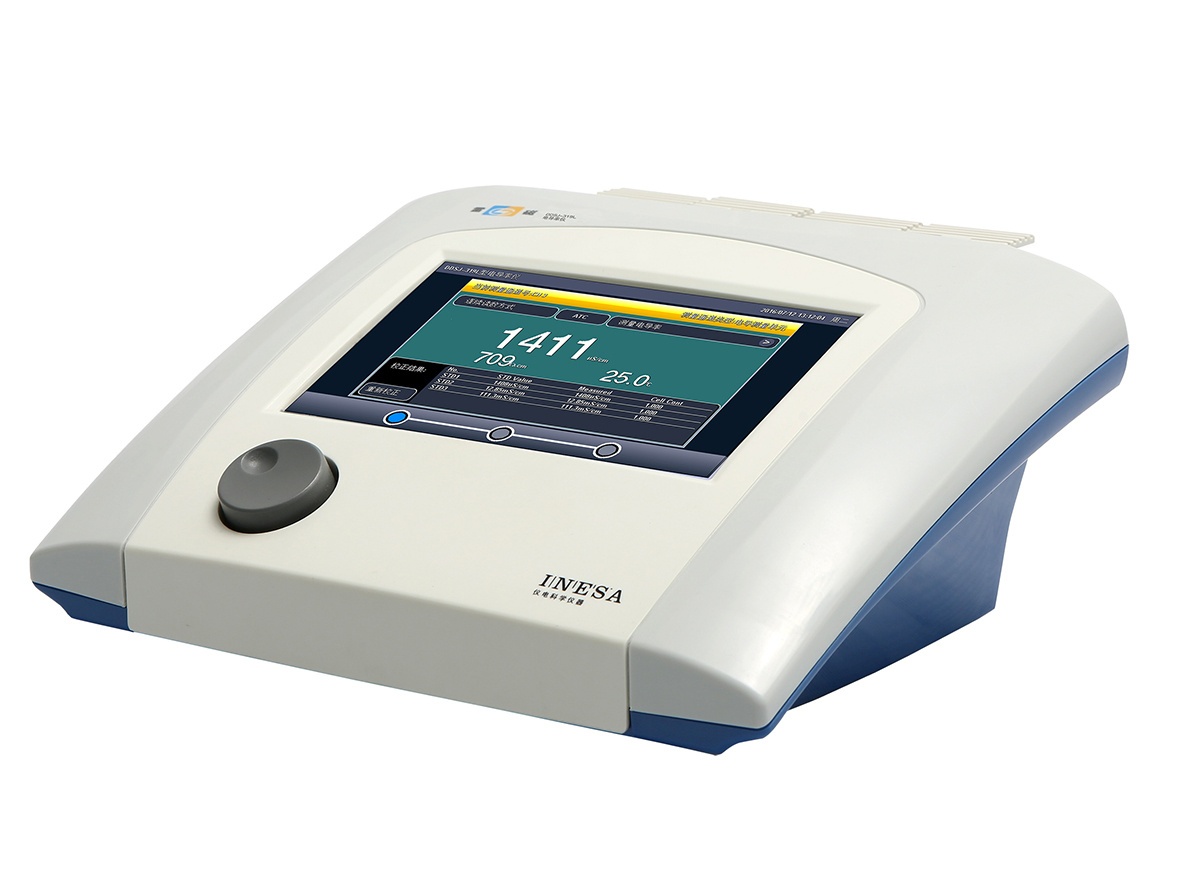 DDSJ-318型电导率仪是一台新颖的实验室分析仪器,它适用于实验室精确测量水溶液的电导率、电阻率、总溶解固态量(TDS)、盐度值,也可用于测量纯水的纯度与温度,以及海水淡化处理中含盐量的测定。